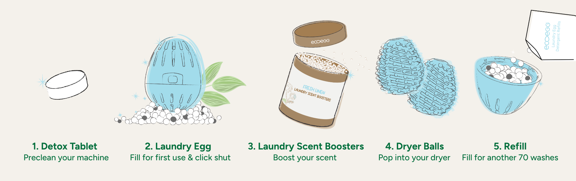 - We’re easy to use! Simply pop in your washing machine draw or drum with your laundry and Laundry Detergent Egg and you’re good to go